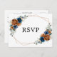 Elegant Navy blue, Terracotta , Orange earthy floral theme wedding RSVP postcard featuring elegant bouquet of Navy blue, Terracotta colour roses peonies and green eucalyptus leaves. Please contact me for any help in customisation or if you need any other product with this design.