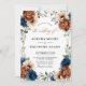 Elegant Navy blue, Terracotta , Orange earthy floral theme wedding Invitation featuring elegant bouquet of Navy blue, Terracotta colour roses peonies and green eucalyptus leaves. Please contact me for any help in customisation or if you need any other product with this design.