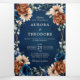 Elegant Navy blue, Terracotta , Orange earthy floral theme wedding Invitation featuring elegant bouquet of Navy blue, Terracotta colour roses peonies and green eucalyptus leaves. Please contact me for any help in customisation or if you need any other product with this design.