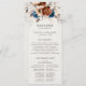 Elegant Navy blue, Terracotta , Orange earthy floral theme wedding program featuring elegant bouquet of Navy blue, Terracotta colour roses peonies and eucalyptus leaves. Please contact me for any help in customisation or if you need any other product with this design.