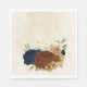 Beautiful earth tone fall paper napkin featuring terracotta, beige and navy blue flowers with green leaves .