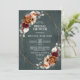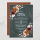 Elegant Red Burgundy, Terracotta , Orange earthy floral theme wedding Invitation featuring elegant bouquet of Marsala, Terracotta colour roses peonies and sage green eucalyptus leaves. Please contact me for any help in customisation or if you need any other product with this design