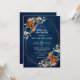 Elegant Navy blue, Terracotta , Orange earthy floral theme bridal shower Invitation featuring elegant bouquet of Navy blue, Terracotta colour roses peonies and green eucalyptus leaves. Please contact me for any help in customisation or if you need any other product with this design.