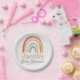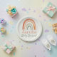 Set a stylish tone for your celebration with this beautiful baby shower plate, featuring a soft, hand painted style boho rainbow in earthy pastel hues above a cheerful “Baby Shower!” and the baby’s name. The warm, neutral palette and modern, minimalist font make it ideal for gender neutral, rustic, or contemporary themes. An inviting accent for your party table, this design blends timeless charm with chic simplicity, ensuring your event feels both coordinated and memorable for every guest.