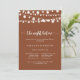 This terracotta night before rehearsal dinner invitation is perfect for a rustic event. The design features beautiful hand-painted string lights in a terracotta background.