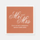 Terracotta orange colour custom paper wedding party Napkins. Elegant script typography design for fancy cocktail or reception party. Customisable hex colour to match your theme. Personalise with Mr and Mrs name of bride and groom plus date of marriage. Beautiful party supplies for your special day.
