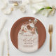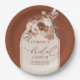 Add a touch of elegance to your celebration with these boho bridal shower paper plates, featuring watercolor terracotta florals, pampas grass, and a chic boho arch. The warm earthy tones of terracotta, copper, burnt orange, rust, dusty orange, and soft neutrals create a stylish and modern design that’s perfect for a trending boho chic bridal shower theme.