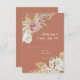 "Terracotta Pampas Palm Rose Wreath Foliage RSVP." Elegant BOHO stylish and trendy wedding suite in rusty earth tones and terracotta. Artwork includes dried palm fronds, sage green leaf foliage greenery and blush and pink roses combined with white tropical orchids all painted in watercolor by internationally renowned artist and designer, Audrey Jeanne Roberts. Copyright.