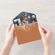 Create a warm, modern first impression with this terracotta photo wedding invitation, designed as an all-in-one invitation and envelope for effortless planning.