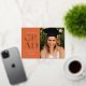 Celebrate your graduation in style with this modern graduation announcement and invitation. It features the word GRAD in a stylish sans serif pressed with foil on the front on a terracotta background, along with space for a photo. The back of the invitation has space for a second photo as well as room for all of the details of your graduation party.