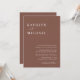 Terracotta Modern Typography QR Code All In One Minimalist Wedding Invitation Card. Celebrate your special day with this elegant and beautiful wedding invitation card to beautify your special occasion. All the texts are pre-arranged for you to personalise easily and quickly with your own details. If you need further customisation or matching items, please email alldaybreakfastzazzle@gmail.com – we would love to help.