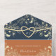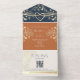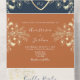 Chic and practical, this all-in-one terracotta wedding invitation features elegant gold floral accents, a monogram on a navy flap, and a modern QR code for RSVP. The folded format combines your invite, response section, and guest details in one convenient piece — no envelope needed. Perfect for rustic boho weddings, outdoor summer celebrations, or modern romantic themes. Personalise the names, date, website, and reply options with ease.