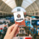 Medical staff terracotta Registered nurse, caduceus photo template Badge with barcode. It features your name, title and photo on white background while the caduceus symbol and the barcode are on terracotta colour.