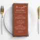 Elevate your rehearsal dinner with this minimalist terracotta menu featuring a modern layout and warm autumn tones. Designed for stylish fall celebrations, this customisable menu adds a sophisticated touch to your pre wedding event. Clean typography and a subtle, earthy palette make it perfect for contemporary barn weddings or cosy indoor dinners.