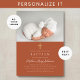 Personalised Terracotta Religious Cross Photo Baptism Invitation.