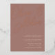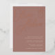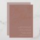 A beautiful typography based wedding invitation featuring your names in oversized rose gold foil script lettering at the top. Personalize with your wedding details in classic serif lettering aligned at the lower right. Our Terracotta colorway is an elegant mix of earthy neutrals, featuring warm white rosy taupe lettering on a terracotta clay background.