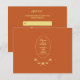 Add an elegant touch to your wedding invites with this terracotta and gold wedding RSVP response card. The front features a rose design along with, "Save the Date," the name of the couple, and the date of the wedding ceremony. Response details are on the back including the deadline for the RSVP and selection of meal choices. Use the template to personalise.