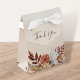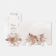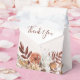 Modern bohemian style favour box featuring watercolor flowers and fall leaves in earthy tones like rust brown, burnt orange and terracotta. Perfect choice for autumn weddings.