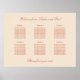 Terracotta Script 6 Table Wedding Seating Poster, please personalise the names of the couple and the names of the guests along with any of the other text that you may wish to personalise. A stylish seating chart poster featuring elegant terracotta text on a lovely straw beige colour background.