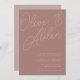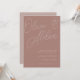 A beautiful typography based wedding invitation featuring your names in oversized script lettering at the top, in tone on tone shades for a watermark effect. Personalise with your wedding details in classic serif lettering aligned at the lower right. Our Terracotta colorway is an elegant mix of earthy neutrals, featuring warm white and rosy taupe lettering on a terracotta clay background.