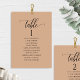 Help your guests find their table with this elegant terracotta modern seating plan cards with guests names. Double sided cards so guests can look from both, front or back for their names. Clear space all around giving you the liberty to use clips or punch hole for hanging displays, or use table holder/frame. Terracotta background and black text. Modern hand written calligraphy details. Several colour options. Have all table numbers in same colour or mix colours according to your event's colour theme. Part of our "Earth Tones Event Signs and Products" collection with a variety of coordinating products available, including table number cards and menus.