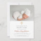 Personalised Terracotta Stripes Religious Cross Photo Baptism Invitation.