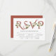 Elegant terracotta typography and white roses fall wedding RSVP card with meal choice. This elegant wedding design features the "RSVP" in a decorative relief font in terracotta with white roses. The back is of solid terracotta colour.