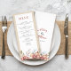 This beautiful Terracotta watercolor flowers fall wedding menu card is the perfect addition to an elegant wedding. Featuring an arrangement of terracotta brown watercolor flowers and leaves on the top of the front and bottom of the back, it also includes the couple's names, making it a very special and personalised piece. A lovely keepsake to remember the occasion, this menu card is an essential part of any wedding celebration.