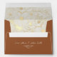 Bohemian, elegant, floral gold and burnt orange terracotta wedding 5x7 envelope with wildflower lace inside, return address and monogram at the top cover.