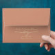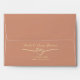 Simple, minimalist, modern terracotta wedding invitation 5x7 envelope with return address and romantic gold rope heart.