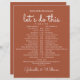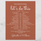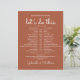 This stylish wedding schedule-timeline can be personalised with your wedding details set chic white lettering on a terracotta background. Designed by Thisisnotme©