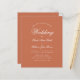 A simple, minimalist budget wedding invitation. It has only white text on terracotta background. The word Wedding and the names are written in an elegant calligraphic script.
