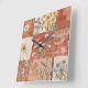Terracotta Wildflower Patchwork Rustic Boho Spring Square Wall Clock