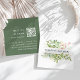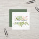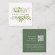Chic botanical business cards in a unique square format feature your name or company name flanked by a top and bottom border of painted watercolor botanical leaves with golden geometric accents. Add your full contact information to the back in white on forest green, along with a customisable QR code. A unique and elegant choice for landscape designers, landscape architects, florists and green businesses.