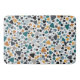 A terrazzo style design featuring random shapes in a range of sizes and colours.