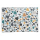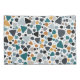 A terrazzo style design featuring random shapes in a range of sizes and colours.