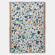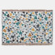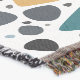 A terrazzo style design featuring random shapes in a range of sizes and colours.