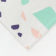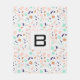 White background with multi coloredterrazzo pattern in blush, mint, beige and blue. Personalise and add your monogram initial, letter.