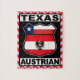 Texas Austrian design, in the style of a cool American road route sign. The text Texas Austrian is along the top and bottom, with the flag of the State of Texas and the flag of Austria inside the route sign. Great for Texans of Austrian descent, and for ex-pats in the Lone Star State.
