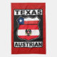 Texas Austrian design, in the style of a cool American road route sign. The text Texas Austrian is along the top and bottom, with the flag of the State of Texas and the flag of Austria inside the route sign. Great for Texans of Austrian descent, and for ex-pats in the Lone Star State.