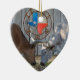 Wrought Iron Art with a metal Texas Map with flag colours and a lone star. With two longhorns grazing in the foreground.