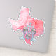 This beautiful contour sticker featuring a traditional Catholic custom designed image of the Marian Cross with roses overlaid on an image of the state of Texas with a pink rose design.