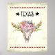 Texas Boho Cow Skull With Flowers Chic Trendy Poster