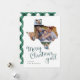 Merry Christmas, y'all! This cute Texas holiday card features the saying in whimsical hunter green script lettering beneath a silhouette of the state of Texas, holding four of your favorite photos. Personalize with your custom greeting and names along the bottom. Cards reverse to a handpainted green and white buffalo plaid pattern.