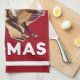 A funny Texas Christmas kitchen towel for proud Texans, with a unique image of Santa Clause riding a reindeer like a bucking bronco in a Texas style rodeo. Great for gift giving during the Christmas season for friends and family in Texas, especially if they enjoy the rodeo!