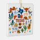 Commemorate your trip to the state of Texas with this modern keepsake Christmas ornament, featuring hand-drawn style illustrations of iconic food, animals, landmarks, landscapes, and culture. Personalise the back to mark your US adventure and create a memory you'll hang up on the tree for the Holidays year after year.
