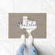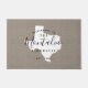 Modern farmhouse personalised doormat with your family name inside your state map. Faux burlap canvas texture background. Click Customise It to add your own text and images and create a unique one of a kind design!