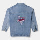 This stylish denim jacket features Texas state silhouette with hand-drawn flower doodles fill, and "Home Sweet Home" text.