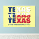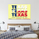 Patriotic TEXAS Friendship Matters canvas print, showing TEXAS TEXAS TEXAS designed in the flag of Texas, set against a pale yellow background. Underneath, there is CUSTOMIZABLE TEXT that reads WHERE FRIENDSHIP MATTERS, which you can personalise by adding your name or creating your own text. The state motto of Texas is Friendship, and the Spanish word, 'tejas', means 'friends', from which the name Texas is said to derive. This would make a great gift for Texans and anyone who loves the American 'Lone Star State', especially at Christmas, birthdays, anniversaries, and for Texas Heritage Month. Choose from a wide selection of Texas-themed cards, invitations, party supplies, clothing, home decor and gifts, designed by Berean Designs. Other sizes are listed separately.