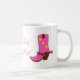 Fun girly mug for any cowgirl who loves the colour pink, with graphics of a pink pair of cowboy boots and sunglasses. Text reads Texas Girls Love Pink, and can be personalised to read what you want.